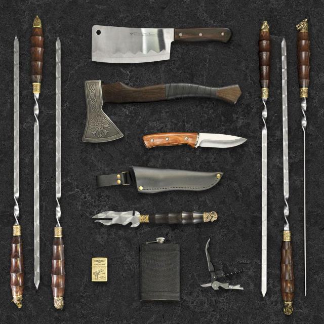 Набір шампурів "Йотун" – це розкішний і функціональний комплект, який містить 31 предмет, спеціально підібраний для приготування смачної їжі на вогні.