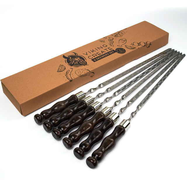 Цей набір включає 6 високоякісних шампурів, виготовлених з нержавіючої сталі, що гарантує їхню довговічність і стійкість до корозії.