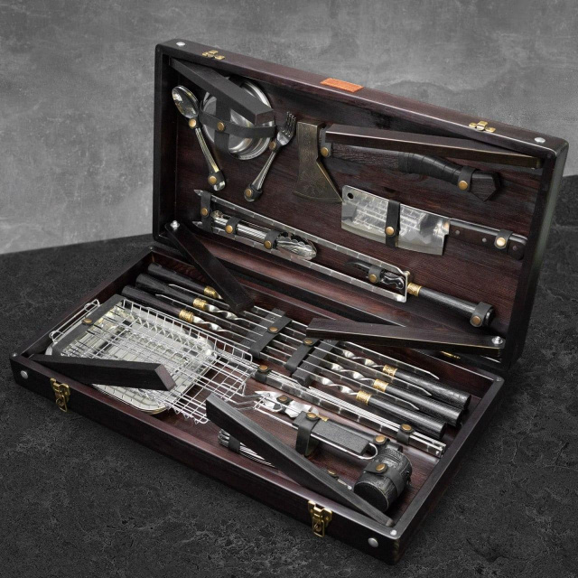 Подарунковий набір шампурів "Валькірія" — це ідеальне рішення для всіх любителів барбекю, грилю та відпочинку на природі. Цей стильний набір включає в себе 39 предметів, які допоможуть вам приготувати смачні страви на вогні та порадувати гостей. Всі елементи зберігаються у зручному дерев'яному кейсі, що підкреслює якість і елегантність комплекту.