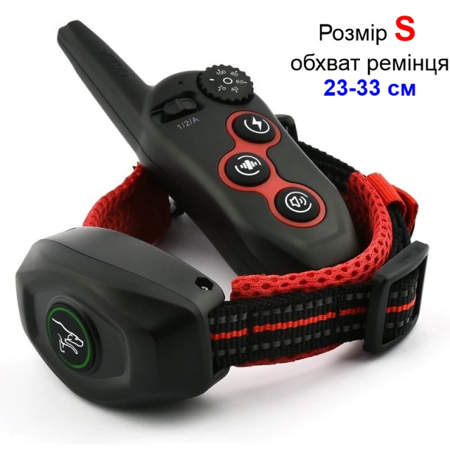 Пульт дистанційного керування має компактні розміри, зручно лежить в руці і має кріплення на пояс. Ним ви вибираєте один з трьох видів впливу - струм, звук, вібрація. Підтримується робота з двома нашийниками, кожен з яких має свій канал. Живлення також від вбудованого акумулятора. При розряді батарей нашийника і пульта є світлова та звукова сигналізація. Тривалість роботи залежить від інтенсивності використання.