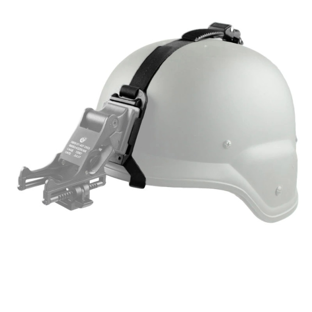 Встановлюється кріплення NVG дуже просто. З одного боку воно зачіпляється металевими тримачами за край шолома, а з іншого боку теж кріпиться кріпленням на протилежний край шолома і стягується нейлоновою стрічкою.