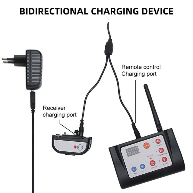 Бездротовий електронний паркан для собак складається з пульта управління з антеною і кнопками управління, а також 1, 2 або 3-х нашийників в водонепроникному корпусі, які одягаються на собаку. Перебуваючи в режимі забору - при наближенні до встановленої вами межі, нашийник подасть застережливий звуковий сигнал, а потім при продовженні спроби вийти з неї вплине електрошоком. Можна налаштувати дальність дії електронного забору від 15 до 300 метрів (дальність умовна і залежить від наявності перешкод між пультом і нашийником).