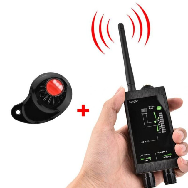 Професійний детектор жучків і бездротових камер 1 МГц -12 ГГц Protect M-8000. Даний детектор призначений для виявлення місця розташування прихованих бездротових камер, бездротових мікрофонів і підслуховуючих пристроїв на базі мобільних телефонів. Даний детектор допомагає визначити місцезнаходження камер або «радіозакладок» за допомогою випромінюваного камерою або «радіозакладками» радіовипромінювання. Подібне радіовипромінювання з'являється під час передачі інформації, до місця її прийому і прослуховування. Однією з двох особливостей даної моделі є можливість виявлення бездротових мікрофонів і камер в різних частотних діапазонах, а саме завдяки широкому діапазону робочих частот від 1 МГц до 12 000 МГц. Представлений пристрій здатний виявляти камери і «радіозакладки» які працюють на загальній частоті 1,2 ГГц, 2,4 ГГц і навіть 5,8 ГГц. Більш того, даний детектор дозволяє виявляти мобільні передавальні пристрої з 2G, 3G і 4G SIM картами.