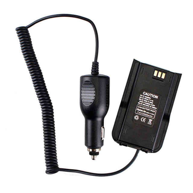 Автомобільний блок живлення - емулятор акумулятора для рацій Retevis RT3, RT3S, TYT MD-380 призначений для живлення зазначених рацій від автомобільного прикурювача з напругою від 12 до 24 вольт. Він кріпиться до рації замість штатного акумулятора та повністю емулює його роботу.