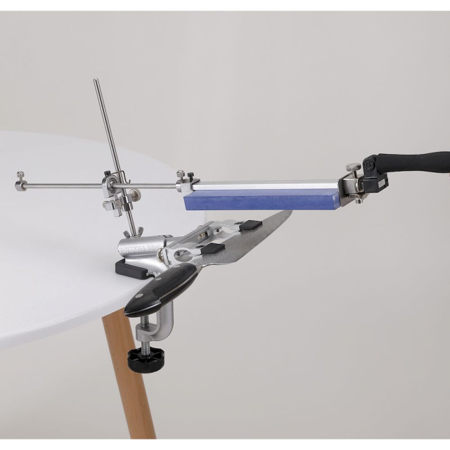 Перевага цього верстата — вдосконалена система фіксації ножа на конструкції. На відміну від попередньої моделі RX-008 із суцільним затискачем, в оновленому верстаті затискач складається з 2 щипців. Відстань між щипцями можна регулювати на власний розсуд, ґрунтуючись на довжині клинка, що заточується.