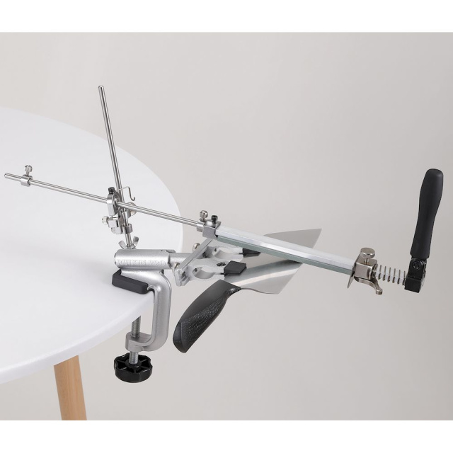 Ця доробка розширює спектр сумісних з точилом інструментів та дозволяє заточувати навіть мініатюрні леза, якими укомплектовані мультитули та багатофункціональні ножі. За необхідності користувач може використовувати для фіксації інструмента на точилі лише одні щипці, а інші відсунути вбік.