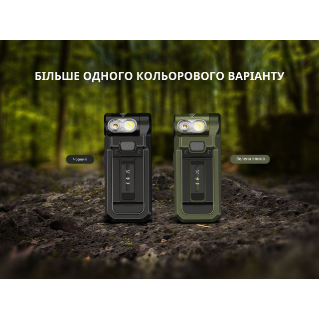 Нахил головної частини корпусу регулюється на 200°, дозволяючи виставляти промінь у зручному для вас напрямку. Подвійний затискач підвищує функціональність пристрою: ви можете кріпити його до козирка кепки, лямки рюкзака, кишені одягу або пояса. У хвіст вбудовано магніт для фіксації конструкції на металевій поверхні.