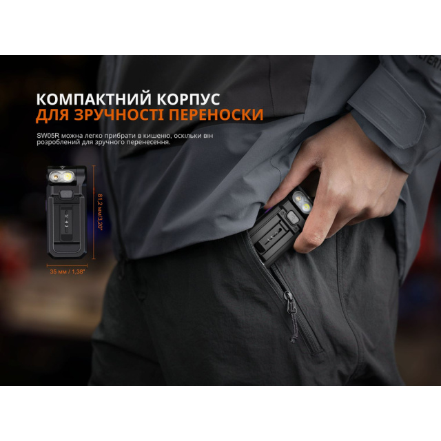 Світлодіодний ліхтар Fenix SW05R-UV — це універсальна модель для повсякденного використання, активного відпочинку та робочих завдань.