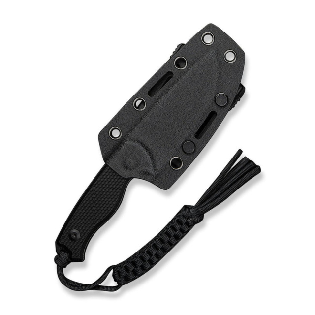 Хвостова частина доповнена плетеним паракордом як прикраса. В комплекті також є чохол з кайдекса із затискачем, розробленим ножовим дизайнером Бобом Терзуола. Затискач з обертовою системою фіксації дозволяє встановлювати ніж у зручному для вас положенні: вертикально або горизонтально.