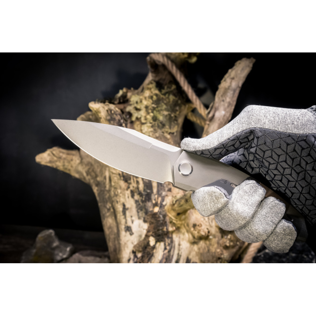 З правого боку руківʼя закріплено однопозиційну титанову кліпсу Deep Carry. Вона призначена для носіння ножа в кишені в положенні Tip-Up (вістрям вгору).
