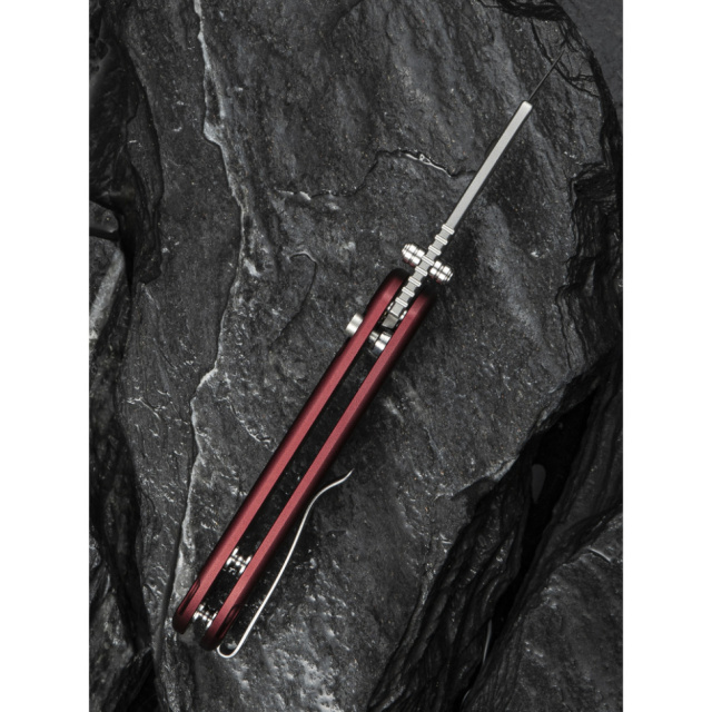 Модель укомплектована замком button lock та керамічними підшипниками в осьовому вузлі. Клинок миттєво виймається з руківʼя при натисканні пружної кнопки та помаху кисті. Ніж можна відкрити й іншими способами: за допомогою шпеника або плавця фліпера.