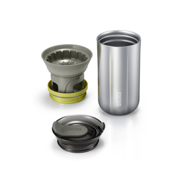 Компактний дріпер-термокухоль Wacaco Cuppamoka призначений для приготування кави методом проливу (пуровер), дозволяючи насолоджуватися ароматним напоєм в офісі, у відрядженні та в подорожі. Аксесуар робить процес заварювання кави швидким і простим: просто встановіть паперовий фільтр (є в комплекті), сумісний з паперовими фільтрами v60, додайте мелену каву, залийте окріп, і через кілька хвилин ваш напій готовий. До того ж Cuppamoka можна використовувати як термокухоль, герметична кришка якого запобігає проливанню рідини.