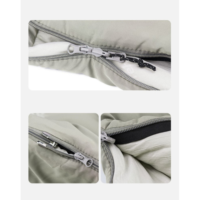 Спальник оснащений блискавкою з лівого боку. Застібку можна повністю розстебнути, перетворивши виріб на широку ковдру або додатковий матрац. Ви також можете поєднати кілька таких спальних мішків разом, щоб збільшити місце для сну.