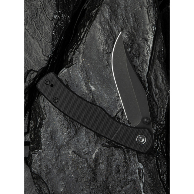 У цій моделі переплітаються традиційність з інноваціями, пропонуючи одночасно практичне та вишукане рішення для повсякденних завдань. Вузький клинок Clip Point з тонким вістрям підходить для різання та проколювання матеріалів різної щільності. Водночас чорне покриття додає естетику до загального дизайну.