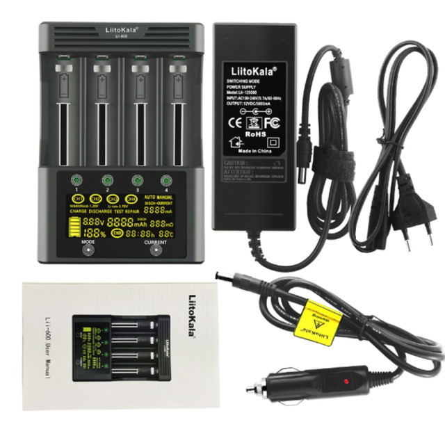 Зарядний пристрій LiitoKala Lii-600, адаптер живлення, адаптер для автомобільного прикурювача, інструкція користувача.