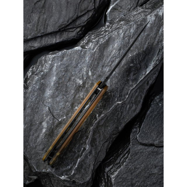 Клинок Drop Point орієнтований на різання та роботу на укол. Проникні здібності підвищені завдяки фальшлезу на обуху. Упор під великий палець та підпальцеві виїмки на руківʼї покращують контроль над лезом під час силової роботи.