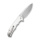 • Клинок Drop Point зі сталі Nitro-V (59–61 HRC). Метал має відмінний баланс твердості, корозійної стійкості та утримання різальної кромки. Завдяки сатиновому фінішу поверхня клинка виглядає благородно та матує сліди пальців або подряпини. Товщина обуха (3 мм) дозволяє впевнено працювати зі щільними матеріалами.
