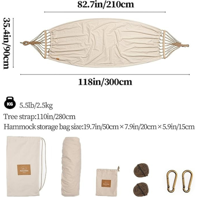 Просторе полотно розміром 210 х 90 см пропонує достатньо місця для однієї людини, дозволяючи повністю розслабитися та насолодитися кожною миттю відпочинку. Підвісити гамак легко: просто зафіксуйте 2 нейлонові ремені на найближчих опорах. Довжина моделі з урахуванням джутових мотузок сягає 300 см.