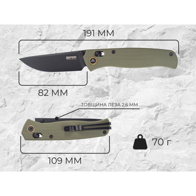 Кишеньковий ніж Medal 255L-GP2 від SRM має акуратний дизайн без зайвих деталей. Суворі лінії, тонкий силует та скромна вага 70 г дозволяють носити модель щодня, не обтяжуючи кишеню.