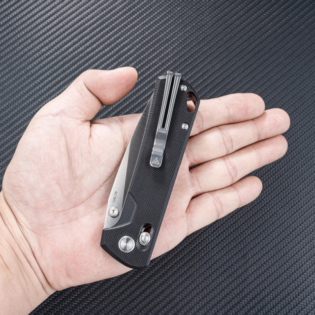 Ніж відкривається однією рукою — потрібно натиснути пальцем на двосторонній шпеник, і лезо миттєво розкриється завдяки сталевим підшипникам в осьовому вузлі. Підшипники знижують тертя в осі та допомагають підтримувати робочу швидкість навіть при частих циклах «відкрили / закрили».