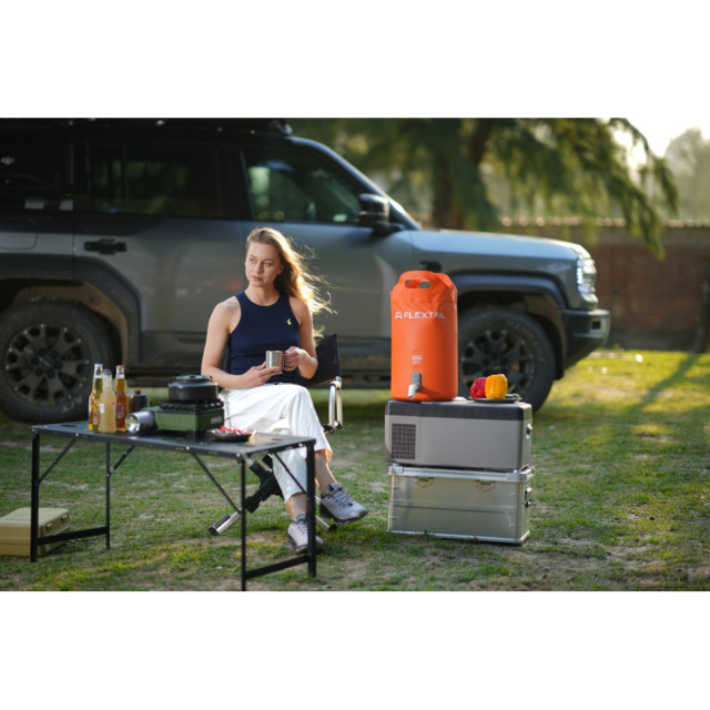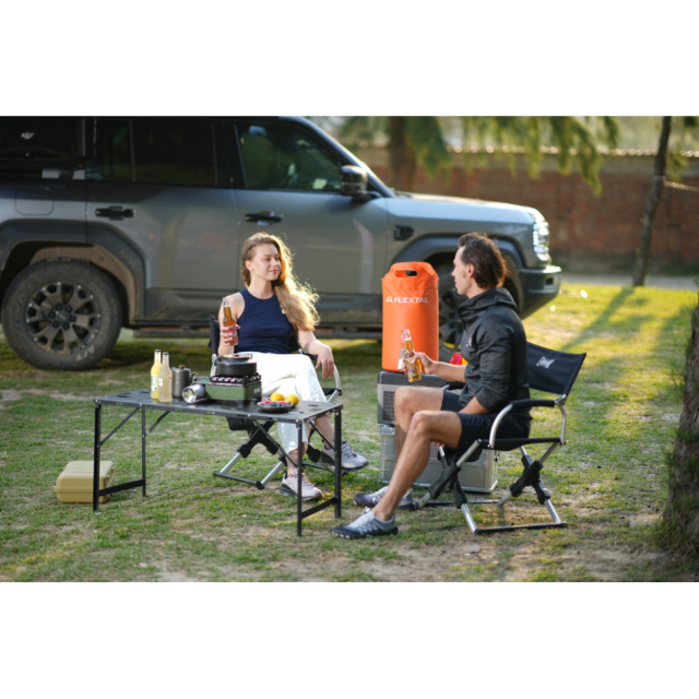 У парі з контейнерами Flextail кран доповнює базову конструкцію зі зручним клапаном видачі води, внаслідок чого система працює як компактна мийка без стаціонарних комунікацій. Це особливо корисно в автокемпінгу, на дачі, пікніках та пляжі, де потрібна контрольована подача води з переносної ємності.