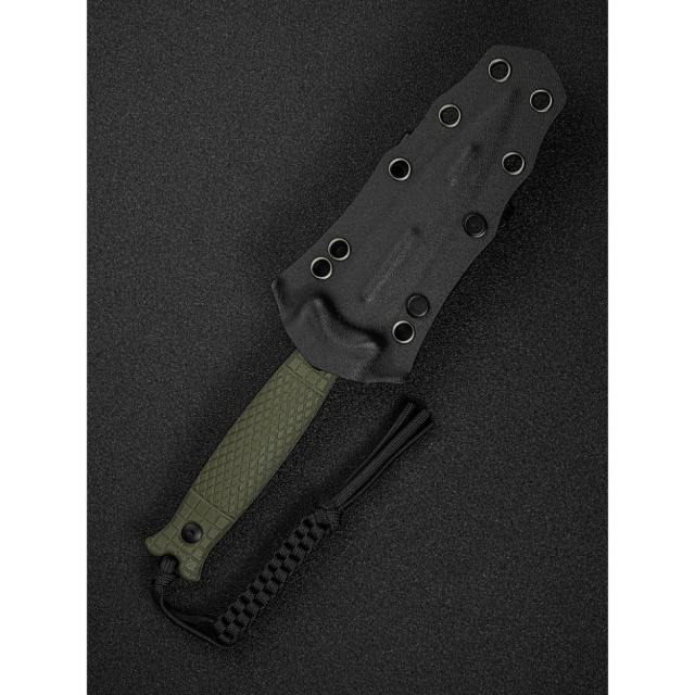 У хвостовій частині руківʼя закріплено паракорд, який допомагає швидше витягувати ножа з чохла.