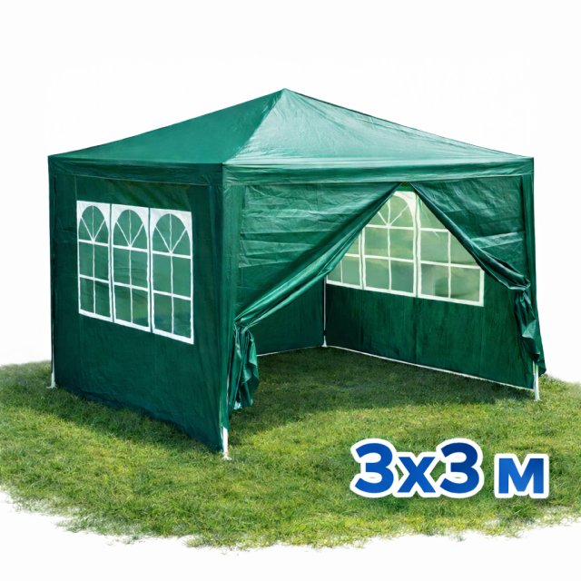 Садовий павільйон площею 9 м² — це зручне та універсальне рішення для відпочинку, святкових подій і виїзної торгівлі. Оптимальний розмір 3×3 метри дозволяє комфортно розмістити стіл і стільці, створивши затишну затінену зону. Павільйон надійно захищає від сонця, легкого дощу та сторонніх поглядів, допомагаючи облаштувати приватний простір у саду або на відкритому майданчику.