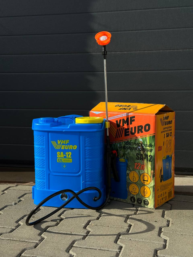 Акумуляторний садовий обприскувач VMF EURO SA-12 - це універсальний, надзвичайно ефективний садовий пристрій, що дозволяє здійснювати комплексний догляд за рослинами протягом 6 годин безперервної роботи. Садовий обприскувач можна використовувати в садівництві, сільському господарстві, на присадибних та дачних ділянках для обприскування рослин та розпилення засобів від комарів та мошок, а також для розпилення хімікатів для дезінфекції. Двигун з живленням від акумуляторної батареї знижує зусилля, необхідні для обприскування, забезпечуючи в чотири рази більшу ефективність порівняно з ручними обприскувачами.