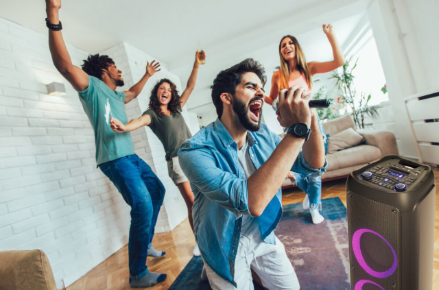 Караоке — мікрофон з регулюванням гучності входить у комплект.