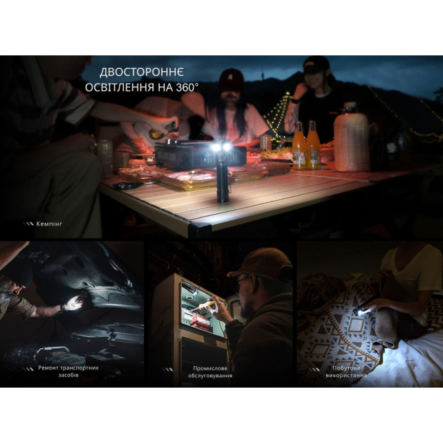 У Fenix LD35R є 15 режимів, поділених на групи: класичне переднє освітлення та бічне світло.