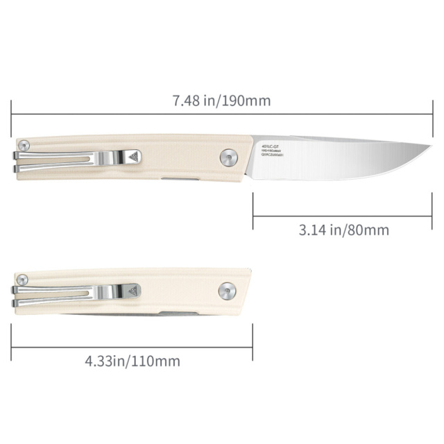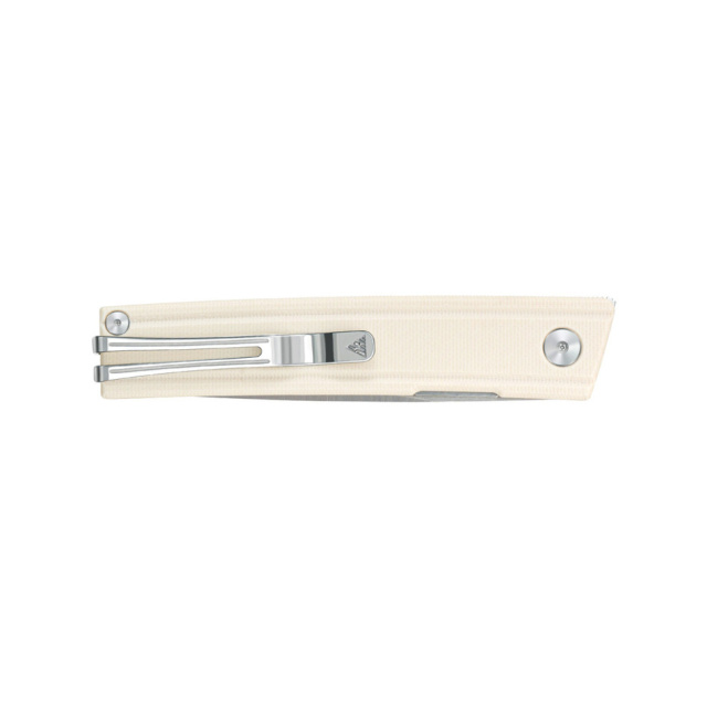 Клинок відкривається натисканням на невидимий фліпер, повністю схований у силуеті. У такий спосіб виступ не чіпляє кишеню та не порушує чисті лінії дизайну. Осьовий вузол працює на сталевих підшипниках, що дають плавний хід леза.