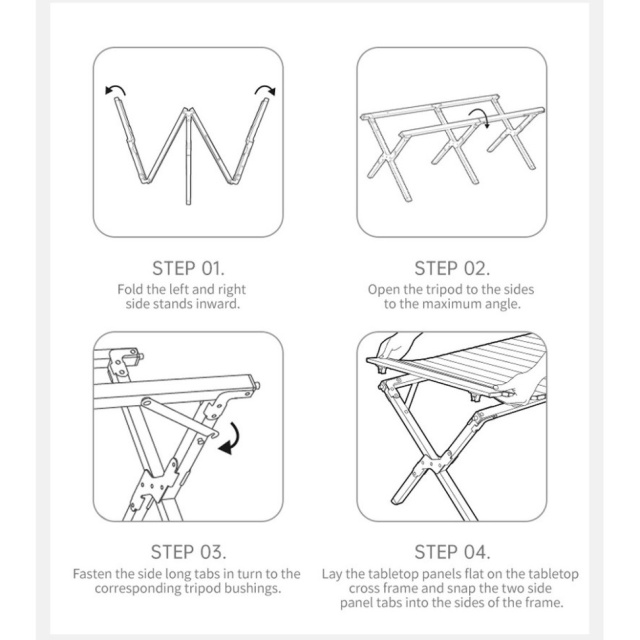 Встановлення є дуже простим: розкладіть каркас і зафіксуйте стільницю зверху. Цей процес займає буквально пару хвилин і не потребує наявності додаткових інструментів.