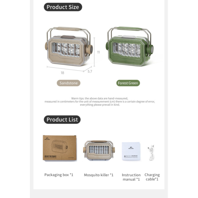 Антимоскітний ліхтар Naturehike, зарядний кабель USB-C, інструкція користувача.
