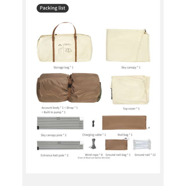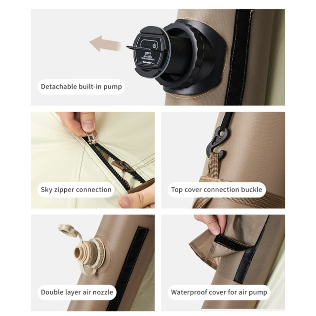 Забудьте все, що ви знали про класичні намети: Naturehike Ango CNK2550WS017 — це справжній прорив у категорії кемпінгового спорядження! Модель має надувну конструкцію, встановлення якої займає не більше 5 хвилин. Жодних дуг каркаса та складних з'єднань — просто натисніть кнопку, і вбудована помпа виконає всю роботу за вас!
