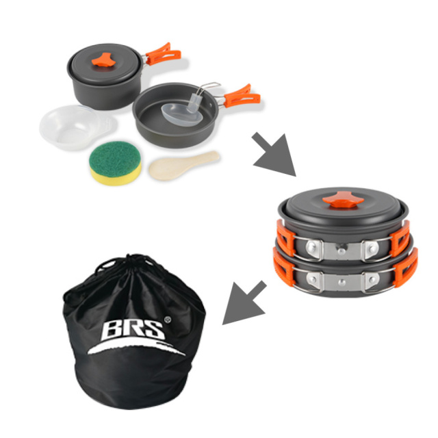 Набір BRS-151 призначений для приготування та приймання їжі на природі. З його допомогою можна одночасно варити суп або кашу, а також смажити гарнір або м'ясо.