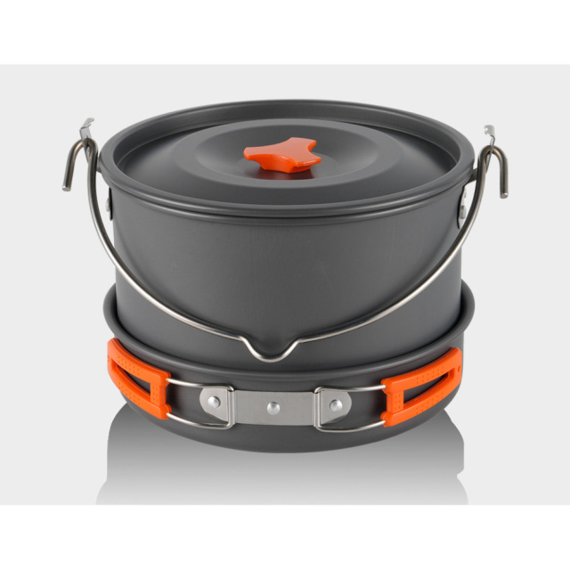 Казанок оснащений допоміжною металевою ручкою для встановлення на триногу та підвішування над багаттям. Така конструкція дозволяє готувати великі порції їжі, не займаючи місце на туристичному пальнику.