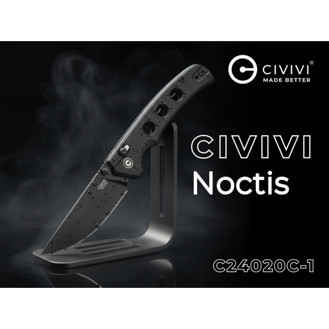 Головна перевага моделі Noctis — її вага, яка складає лише 78 грамів. Це дає змогу носити ніж навіть у легких літніх штанах, не відчуваючи дискомфорту. Руків'я з композиту G10 має класичну форму, яка комфортно лягає в долоню, а шорстка текстура накладок забезпечує впевнений хват і не дає ножу ковзати в руках.