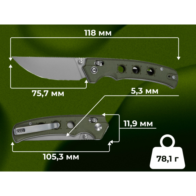Для комфортного розташування на одязі передбачена сталева кліпса глибокої посадки, яка надійно фіксує ніж, залишаючи його майже непомітним. При бажанні її можна переставити на інший бік руків'я. CIVIVI Noctis — це надійний та естетичний ніж із чудовою геометрією, який поєднує в собі високу твердість сталі та мінімальну вагу.