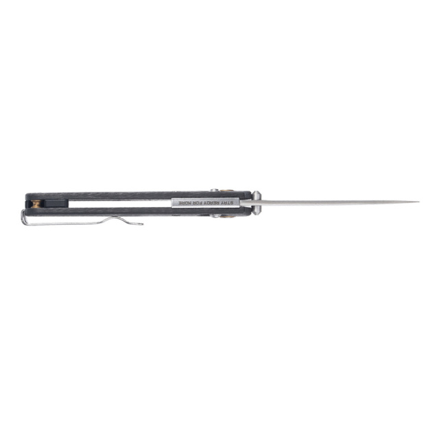 У хвості закріплено сталеву кліпсу, яка дозволяє повністю сховати ніж у кишені для непомітного носіння.