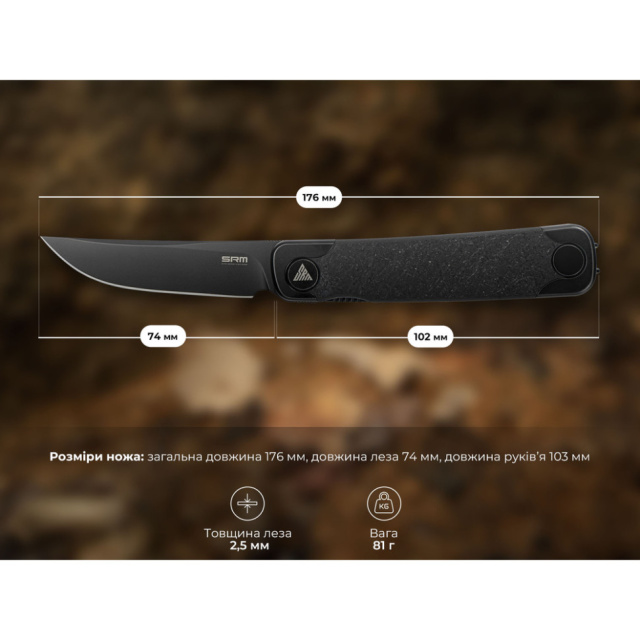 Серія SRM Enso включає складані ножі для повсякденного носіння, які адаптовані для виконання базових завдань. У конструкції поєднуються мінімальна вага (лише 81 г) та вивірена ергономіка, що розподіляє навантаження по всій долоні, знижуючи відчуття втоми.
