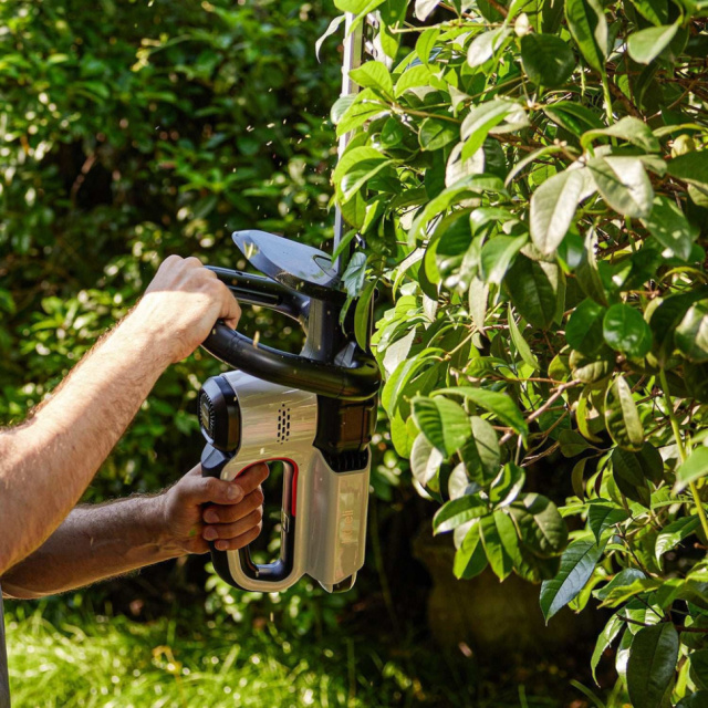 Конструкція кущоріза вагою всього 2,5 кг дозволяє впевнено маневрувати інструментом під час стрижки високих огорож або складних декоративних форм. Зі знімним павербанком ви вільно працюєте в найвіддаленіших куточках саду — жодних кабелів під ногами, пошуку розеток чи метушні з бензином