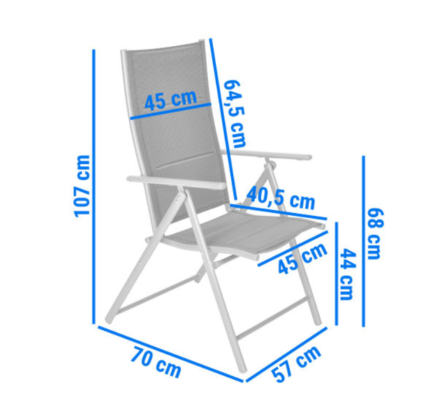 Стильний та практичний садовий стілець MODENA — ідеальне рішення для відпочинку на терасі, балконі, у саду чи на дачі. Завдяки легкому, але міцному алюмінієвому каркасу він поєднує мобільність, стійкість і довговічність. Сидіння та спинка виготовлені з якісного зносостійкого матеріалу textilene, який добре пропускає повітря, швидко висихає та не втрачає вигляд під впливом погодних умов. Стілець легко складається, займає мінімум місця при зберіганні та оснащений підлокітниками й регульованою спинкою з 8 положеннями нахилу, що дозволяє обрати максимально комфортну позицію для відпочинку.