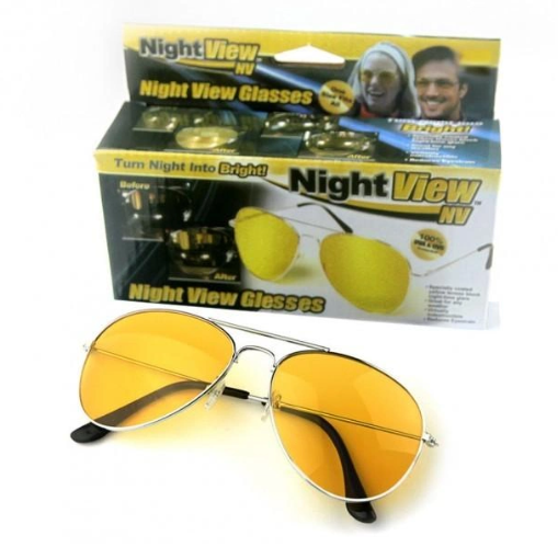Окуляри нічного бачення Night View Glasses - призначені для покращення видимості у темний час доби. Зображення дороги буде більш чітким та контрастним, що значною мірою впливає на безпеку руху та дозволяє уникнути непередбачених ситуацій на дорозі. Можна одягати поверх окулярів для покращення зору. Лінзи жовтий інгредієнт в тонкі металеві оправи. Лінзи мають форму класичних крапель, що підходять для будь-якого типу обличчя.