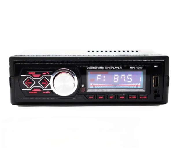 Опис: Автомагнітола MP3 1097 BT - це стильний і функціональний пристрій з яскравим червоним підсвічуванням, який ідеально впишеться в інтер'єр вашого автомобіля. Вона оснащена Bluetooth, що дозволяє використовувати її для гучного зв'язку та бездротового відтворення музики. Пристрій підтримує підключення через USB та SD карти, забезпечуючи зручне відтворення музики без потреби використовувати застарілі CD-диски.