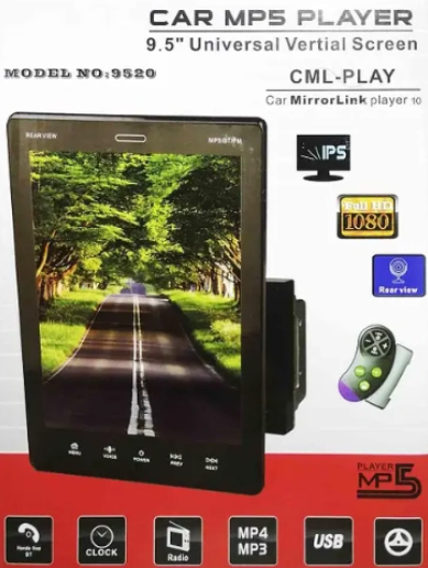 Опис: Автомагнітола MP5 9520 з 9.5-дюймовим вертикальним сенсорним екраном це багатофункціональна мультимедійна система для вашого автомобіля. Екран має роздільну здатність Full HD 1080x1920 пікселів, що забезпечує чітке зображення та відмінну передачу кольорів. Магнітола підтримує відтворення безлічі мультимедійних форматів, включаючи MP3, MP4, AVI та WMA, а також оснащена вбудованим FM-радіо з можливістю збереження до 30 станцій. Підтримується Bluetooth для гучномовця та потокового відтворення музики з мобільного телефону.