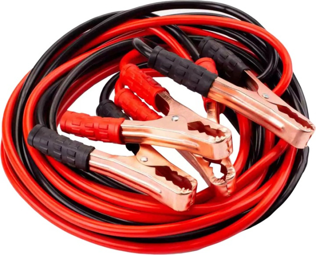 Провід для прикурювання АКБ мідний 500А 2.2м 2 шт (пусковий провід, прикурювач акумулятора) Призначений для запуску двигуна автомобіля з розрядженою акумуляторною батареєю від акумулятора іншого автомобіля. Cила струму - 500А Довжина проводів - 2,2 метра Ізоляція проводів зроблена з термоеластопласту (ТРЕ), що характеризується довговічністю та морозостійкістю Для зручності та безпеки при використанні кожен провід має свій колір - червоний (+), чорний (-). Посилені мідні затискачі з широким кутом захвату і гострими зубами легко кріпляться до будь-якого типу клем акумулятора. Затискачі також ізольовані з неробочого боку, що перешкоджає замиканню контактів та не зашкодить електронній системі автомобіля.