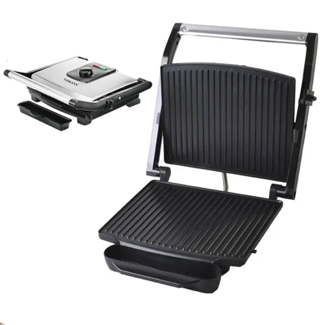 Электрогриль Sokany - ваш идеальный помощник для приготовления блюд на гриле Электрогриль Sokany - это удобное и многофункциональное устройство, разработанное для эффективного приготовления разнообразных блюд. Благодаря прижимному механизму и двустороннему нагреву, гриль обеспечивает быстрое и равномерное приготовление пищи. Основные характеристики: Мощность: 2000 Вт Рифленая поверхность: Антипригарное покрытие Материал корпуса: Нержавеющая сталь Преимущества: Двусторонний нагрев: Равномерное приготовление пищи с обеих сторон, что делает блюда хрустящими и сочными. Антипригарное покрытие: Предотвращает прилипание пищи, что упрощает процесс приготовления и очистки. Регулировка крышки: Возможность регулировки высоты верхней крышки для адаптации под различные виды продуктов. Индикаторы: Две лампы - одна сигнализирует о процессе нагрева, а другая о готовности к использованию. Использование: Назначение: Идеально подходит для приготовления мяса, рыбы, овощей, а также сэндвичей с различными начинками. Удобство: Станет отличным дополнением вашей кухни, позволяя наслаждаться вкусными и ароматными блюдами в любое время. Уход и хранение: Легко очищается благодаря антипригарному покрытию: Очистка: Легко очищается благодаря антипригарному покрытию. После использования дайте грилю остыть и протрите мягкой салфеткой. Хранение: Храните в сухом месте после очистки. Электрогриль Sokany обеспечивает эффективное приготовление пищи с минимальными усилиями, что делает его незаменимым помощником в вашей кухне.