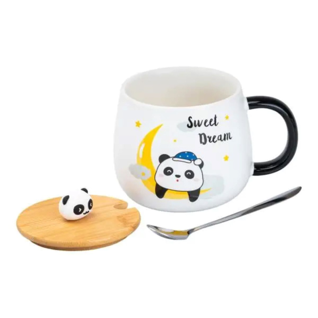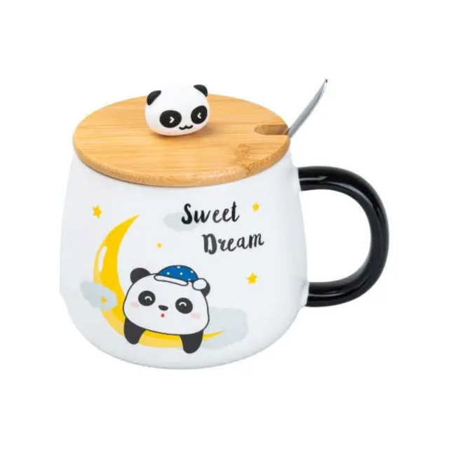 Чашка фарфоровая Панда 450 мл с бамбуковой крышкой Sweet Dream HP7203M