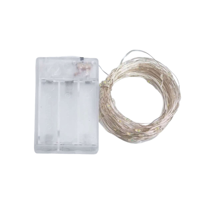 Гирлянда роса 10 метров капля на батарейках на 100 led белый провод белая 100L10MWW