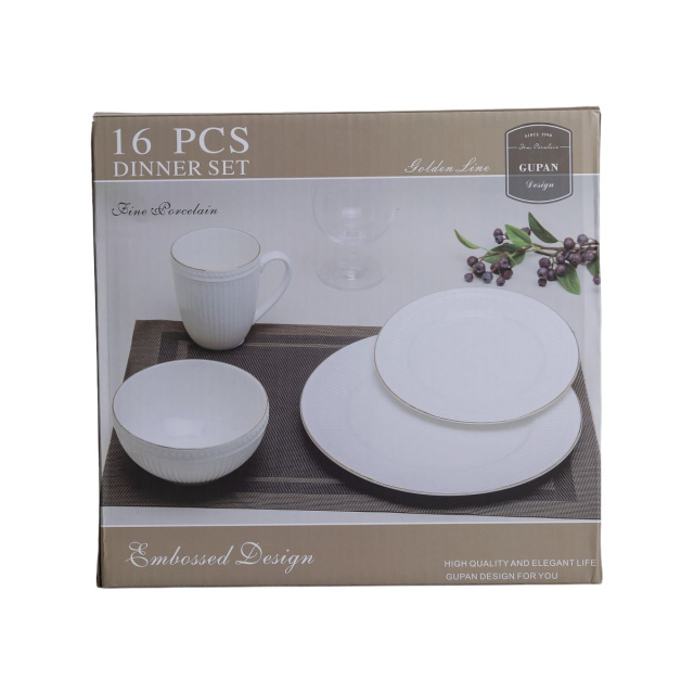 Столовый сервиз на 4 персоны фарфоровый с позолотой Белый HP-7-700